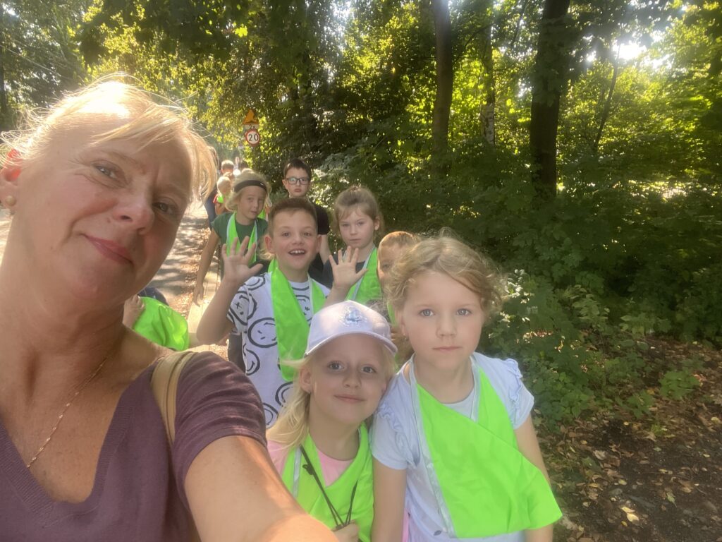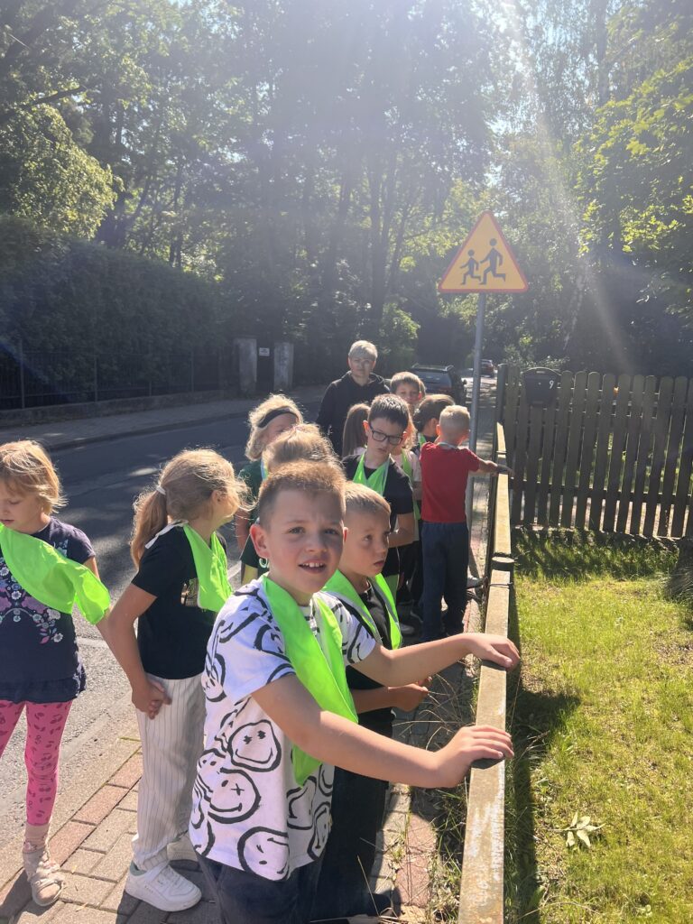 Uczniowie klasy 2b powtarzają w teorii i w praktyce informacje o ruchu drogowym. Wszyscy uczniowie rozpoznawanie znaków drogowych oraz przechodzenie przez ulicę zaliczyli na szóstkę.