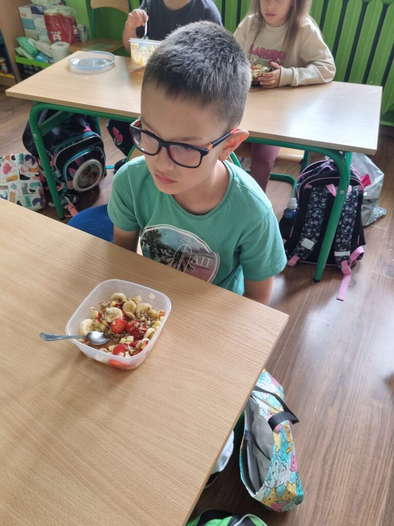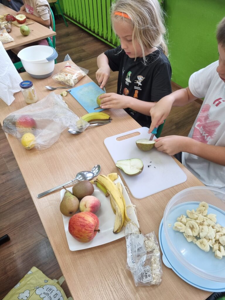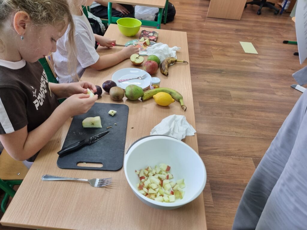 Zajęcia o zdrowym odżywianiu Dnia 26.09.2025 r w klasie 2b odbyły się zajęcia o zdrowym odżywianiu. Dzieci wykonały sałatkę owocową.